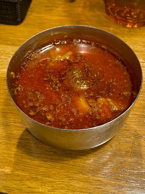 真鱈の白子を使った四川風花椒使いが刺激的な激辛カレーです。もっちり弾力のある白子を使っているのが新鮮。白子の優しい味わいと凶暴なスパイス使いを花椒の華やかな風味でまとめています。こんなスパイスの合わせ方って魯珈だけの成せる技。痺れはそれほどでもないので、もっと痺れたい人用にブースト可能です。