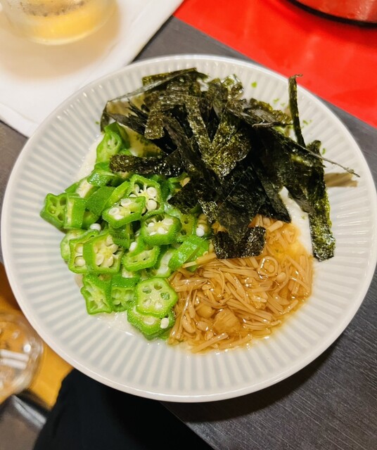あとは軽めにオクラなめ茸とろろ、生ピーマンをいただきました。