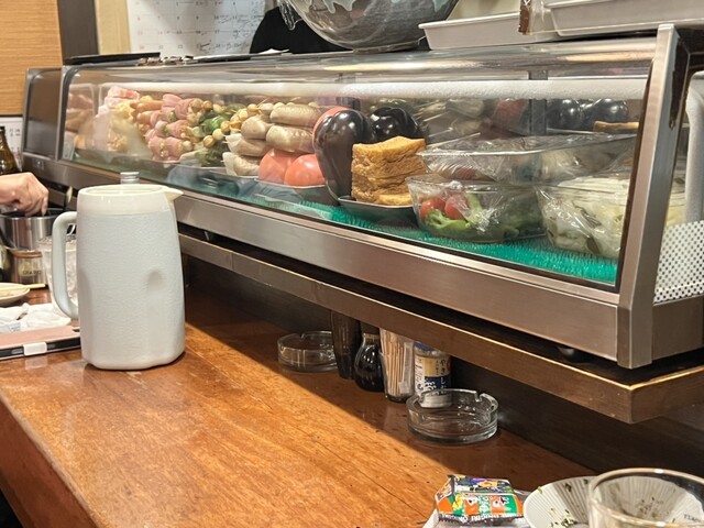 カウンターのケースには見るからに新鮮な野菜や串がズラリ。