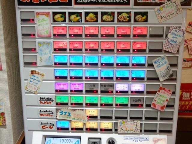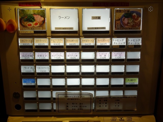 入店しますとかなり広い店内は満員御礼状態でして、とりあえず入って右側にある券売機でデフォルトラーメンを、アレレ???