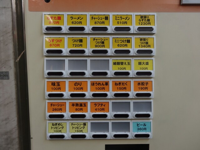 夕食前の早めの訪問で、運よく店舗前に待ちは客はおらず、入店しますと左側に券売機があり、プラスチック製の色つきプラ券が元直系を感じさせますね。