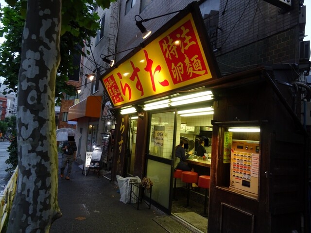 この日は夕方から雨がパラついていましたが、店舗前まで来ると本降りになってしまい、店内の券売機の前には私の直前にナント、一気に4人の男性客が入店したことから混雑するという事態に、私は本降りなった雨の中、店舗前で数分待ちました!