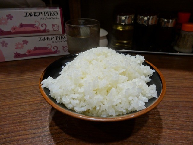 ライスは家系ラーメン店でよく使っている大盛りライス用の器にガッツリと山盛りで入っておりました!