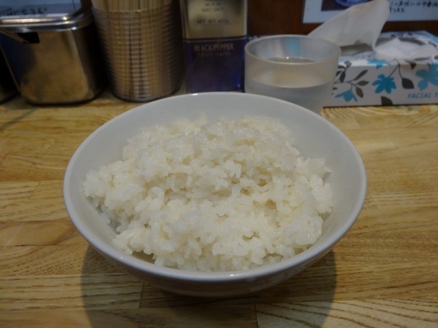 ライスは小ライス、デフォルトライスともに50円でして、コチラもアップした画像の通り、家系でよく使われている大盛り用の器よりも一回り大きいドンブリにガッツリと入っており、50円という価格でココまでガッツリと入っているライスは、コチラに関してはCP抜群ですかね。