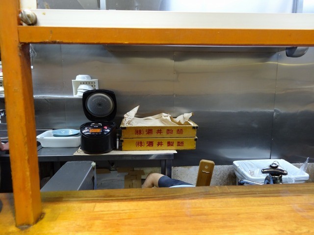 厨房を覗きますと、私の座ったトイメンに酒井製麺の麺箱がありまして、そこから私を含めて5人分の麵をほぐし、まとめて大きい寸胴鍋へ放り込みました。