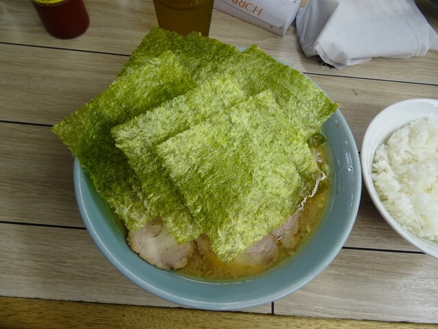 この海苔、セントラルキッチンの家系ラーメン店でよくある感じの海苔ですね。