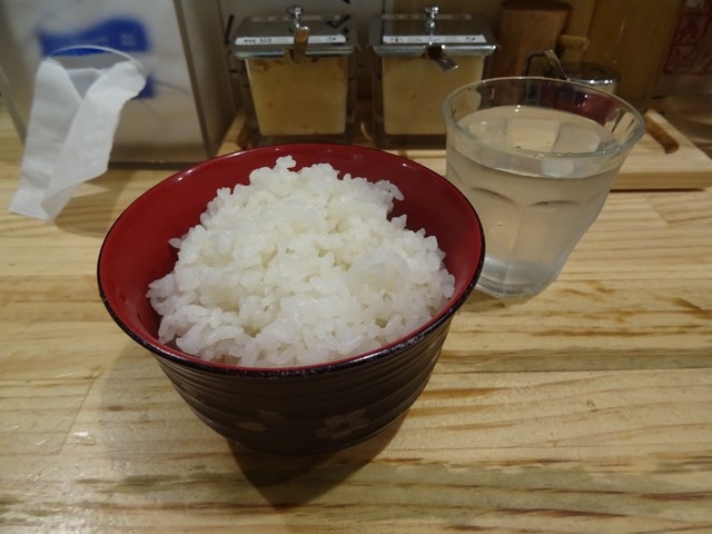 ライスは一見した感じでは小さめの器に入っていると思われましたが、縦に細長い感じの器でして、量的には家系でよく使われている普通ライス用の器に入っているぐらいの量はシッカリと入っており、値段以上の量という感じでしたね。