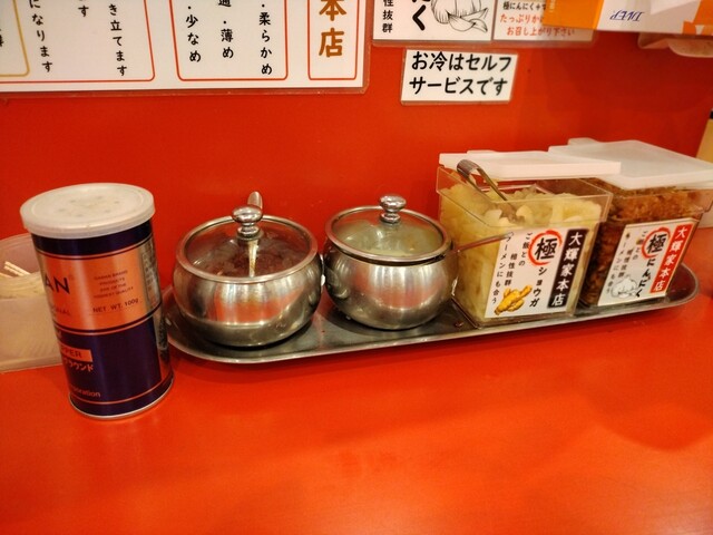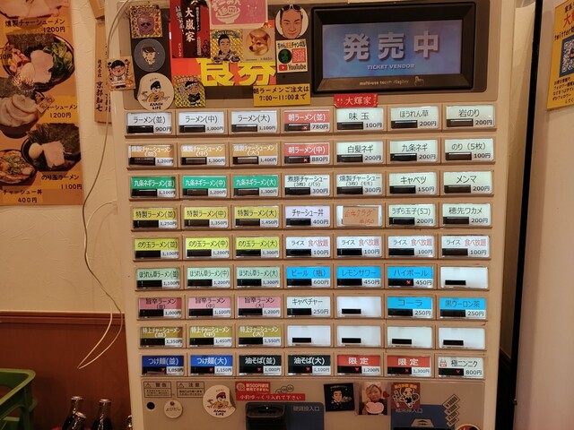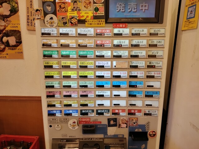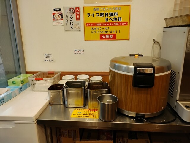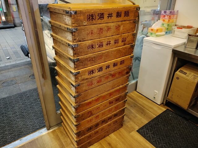 しかし、店内入り口近くには”杉印”酒井製麺麺箱が高く積まれており、丁度アイドル時間内であることが分かり、入って右側にある券売機でデフォルトラーメン税込み900円と食べ放題ライス税込み100円をポチリ、いつものカウンター席へ着座しようとすると、顔なじみの店員が「そこは寒いから奥に座ったら?」と、親切に促されましたが、私は「寒い中で食べる方が美味しい…」と伝え、いつもの席へ着座しました!
