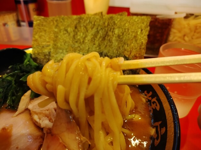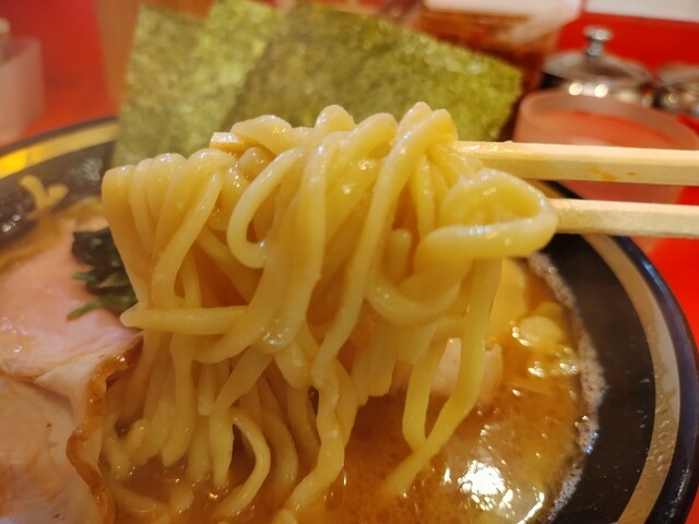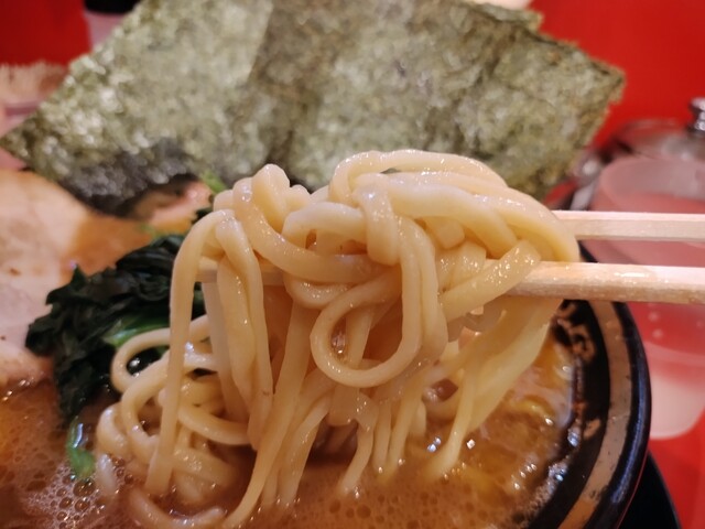 酒井製麺杉印使用麺7分茹で指定の仕上がり具合は、完全なるパーフェクトでして、このぶっ濃いスープをよく運んでくれまして美味さ倍増の、昇天現象ガンギマリ状態が次々と脳裏を襲い、幸福感満載ですわ!!