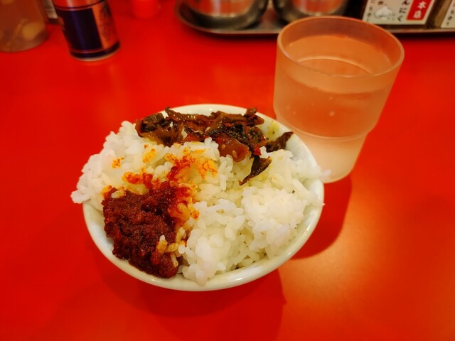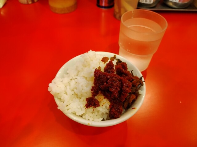 出入り口が常時開いており、ビニールカーテンで仕切られるも寒い風が容赦なく店内に入り、私の背中が冷やされておりましたが、ぶっ濃い熱々スープが体内に入った瞬間、一発昇天のガンギマリ状態で体内から発熱し、美味しさ倍増の幸福感こみ上げという冬ならではのオマケ作用で更に美味しくなりまして、ここまでくると感動もんですわ!!