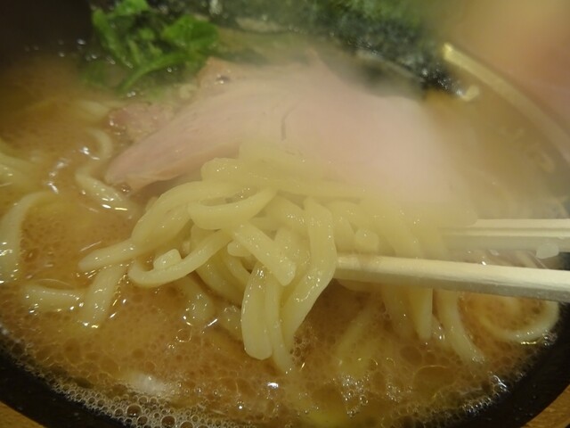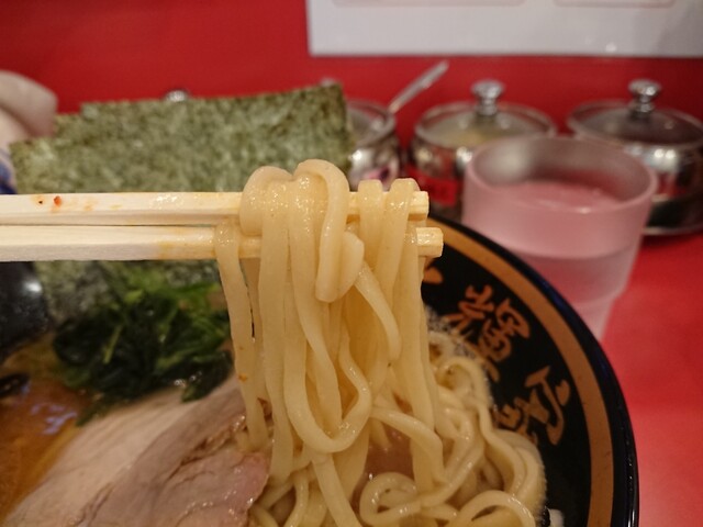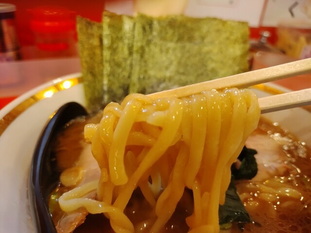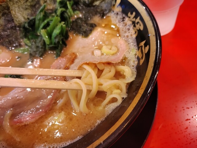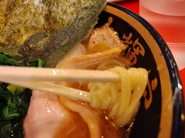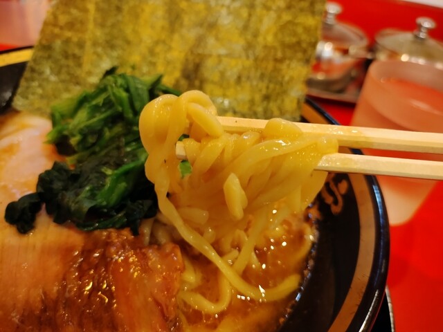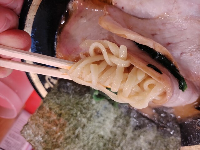 ズズズしますと、中野系武蔵家系譜のテイストは、豚骨出汁の適度なコクが口の中で鶏油と交わりながら静かに広がっていきます。