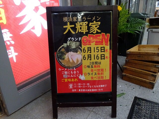 有名なお店でいうと、西口では直系にカムバックした「環2家 蒲田店」が、東口では大田区内の家系ラーメン店では一番美味しいと言われる「らーめん飛粋」が、中野系武蔵家系譜となる「志田家 蒲田店」、そして今回グランドオープンした京浜急行蒲田駅から徒歩1分のところにある、今回初訪問した「大輝家」でして、こちらは志田家出身の方のお店とのこと。