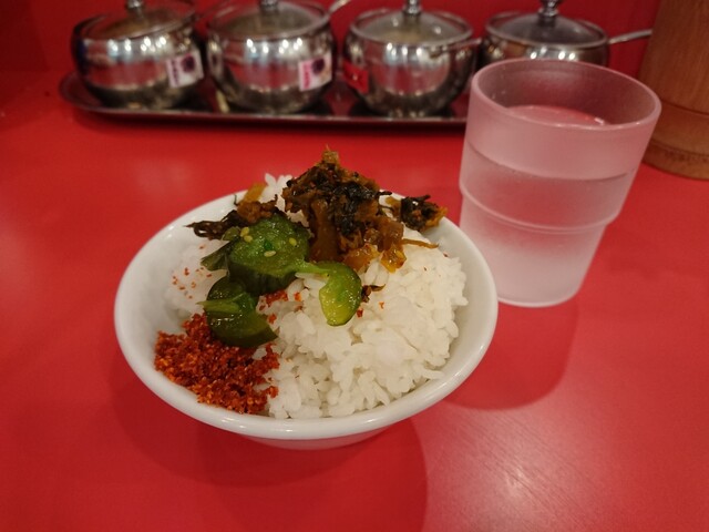 ライスバー形式で提供される終日無料ライスを3杯半食べまして無事”完まく”です!