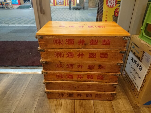 このお店は酒井製麺中太なのに、どーゆーわけかテボ茹でが許されているお店でして、酒井製麺でもテボの中にドボンのままでは、酒井製麺の本当の美味しさは引き出せません!