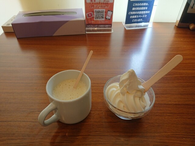 食後は無料ソフトクリームとホットコーヒーで朝のお腹はこれで完全に満たされます!
