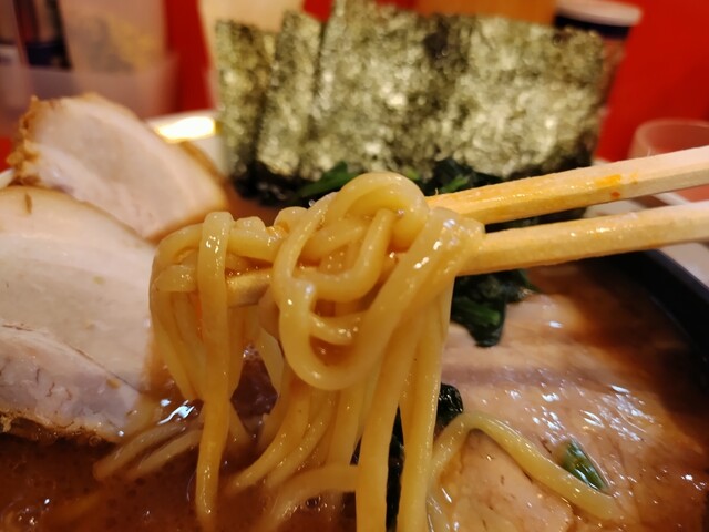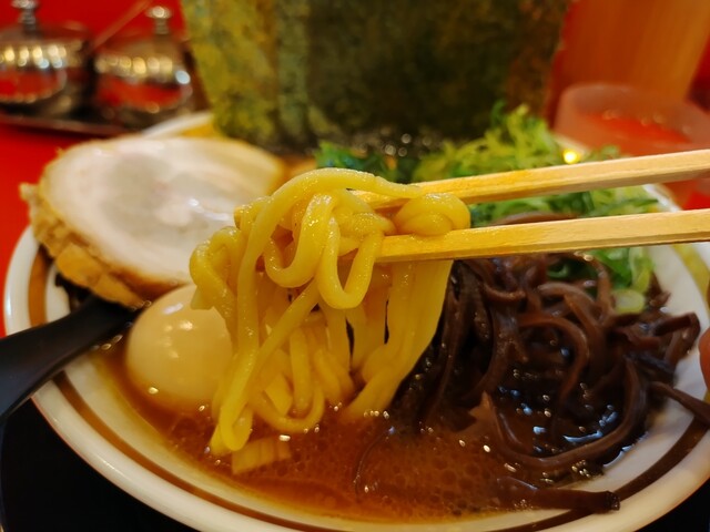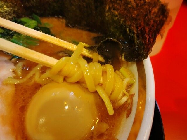 非酒井製麺の製麺所は家系ラーメンの中でもかなり有名なところでして、テボ茹でながらも茹でている最中に菜箸で撹拌されておりますので、私の求める柔らかさにドンピシャでして、酒井製麺かと思わせる麺のテイストは、誰が食べても「美味しい!」と言わせる麺となっております!