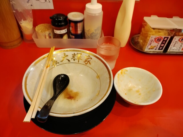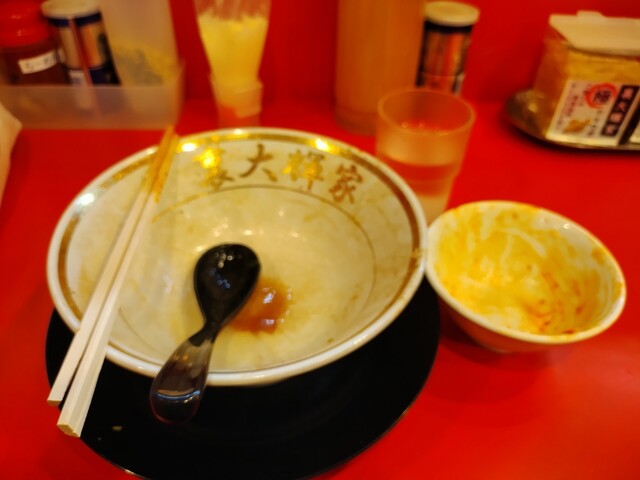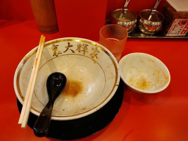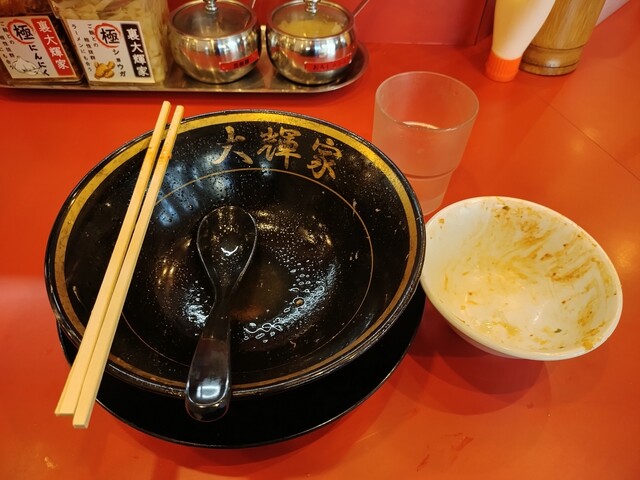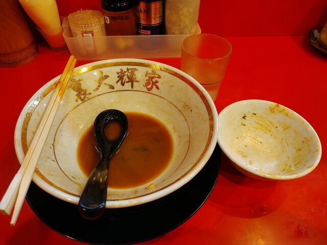 ライスとスープだけで逝けてしまうという大輝家の一杯は、もう完全無比のライバルはいないと断言できるほどのテイストでして、この時点で満足度一兆パーセントですわ!