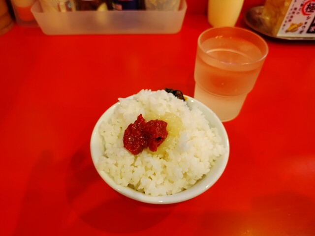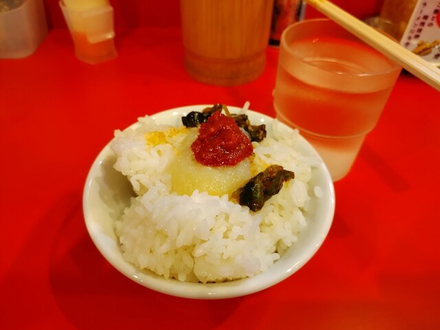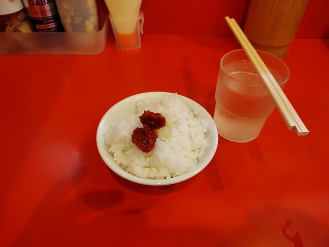事実上のチャーシュー麺となるデフォルトラーメンは、身バレサービスで頂いた味玉と合わせ、かなりのボリュームでしたので、税込み100円食べ放題ライスはお変わり不要でした!