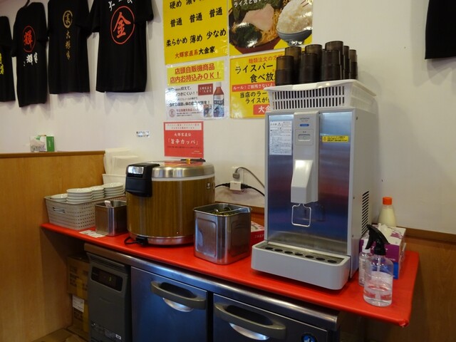 入って左側にある券売機でデフォルトラーメン税込み850円と食べ放題ライス税込み100円をポチリ、運よく去年初訪問時に着座した席が空いておりましたので、そちらへ着座の、アジア系(?)男性店員に麺7分茹で指定で食券を渡しますと、その店員は他の店員さんに何かの確認をしております。