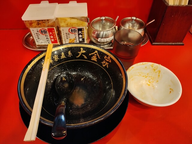 理由は「麺屋 旭」の時と同じでして、youtubeで「大金家」の動画を見た際、寸胴鍋の中で大量のガラが炊かれている光景を見まして、「これは体の健康にとって、かなり悪そうだな・・・」という印象からそれがトラウマとなり、食べに行くのを控えていたというのが理由であります!(去年、糖尿病の指針となるHbA1cの値が7.0を超えましたからね・・・)