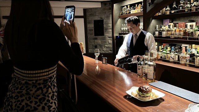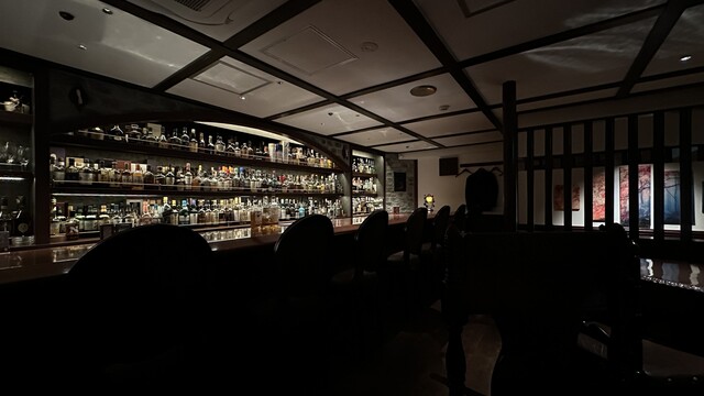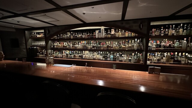 重厚なウッド調のカウンター、ずらりと並ぶボトル、柔らかな間接照明——まるでクラシックな映画のワンシーンのような雰囲気に、一瞬で心を奪われる。