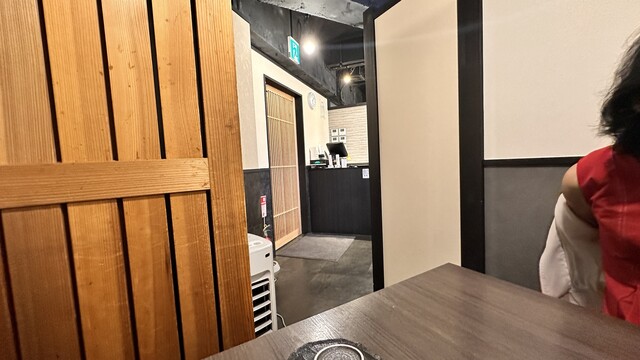 暖簾をくぐれば、木の温もりとやわらかな照明に包まれた落ち着いた空間。