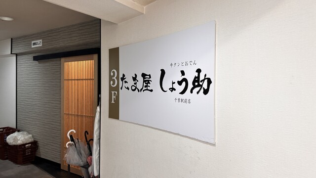 エレベーターを降りると、白地に堂々と筆文字で書かれた「たま屋 しょう助」の看板が出迎えてくれる。