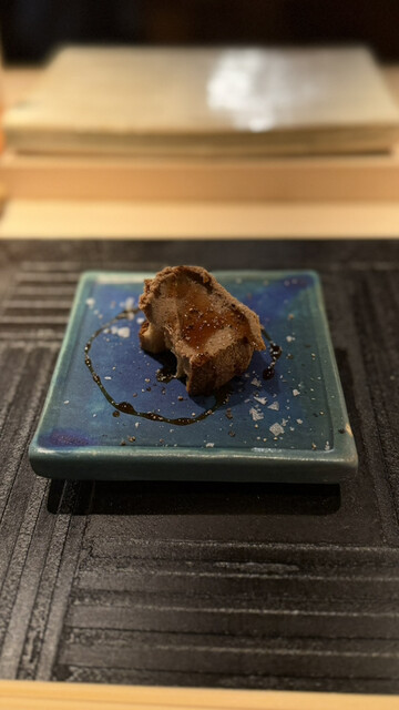 2度目の訪問です。前回同様にカウンター席でコースを注文。少し照明が落ちて雰囲気のある店内と、活気のある調理場に素敵な大将と、一目で人気店とわかる感じがすごい。
