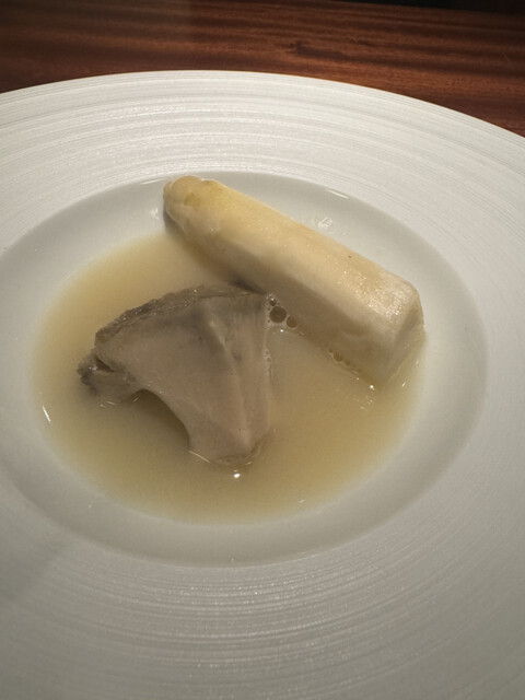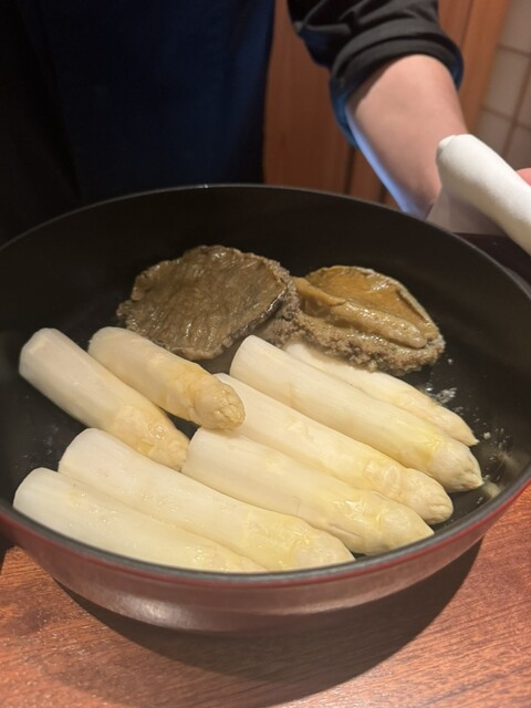 佐渡黒アワビ アルザス白アスパラ 泡のようなバターソースが二重丸