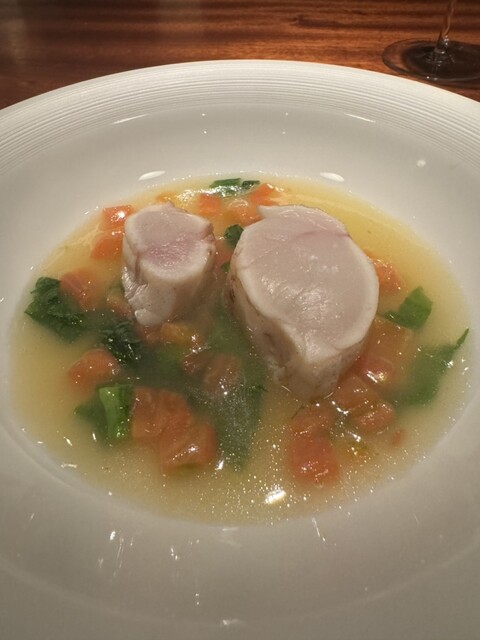 通常素材が悪くなったものを、バターやソース、フォアグラなどで補うのがフランスのフランス料理ですが、藤本さんなどの国内最高級の素材を使うことで取り繕わずに美味しさを引き出せる、四方を豊かな海に囲まれた日本流のフランス料理といったところです。ただ食材を煮詰めてソースを作るというフランス料理の王道的技法はそこに存在しております。