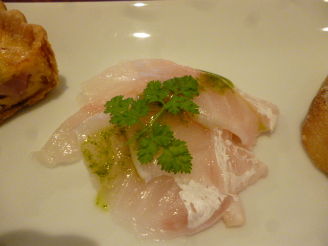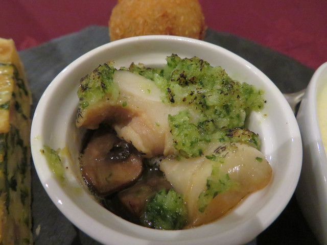ライスコロッケ、キッシュ、薄くスライスした蛸