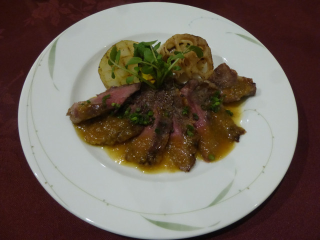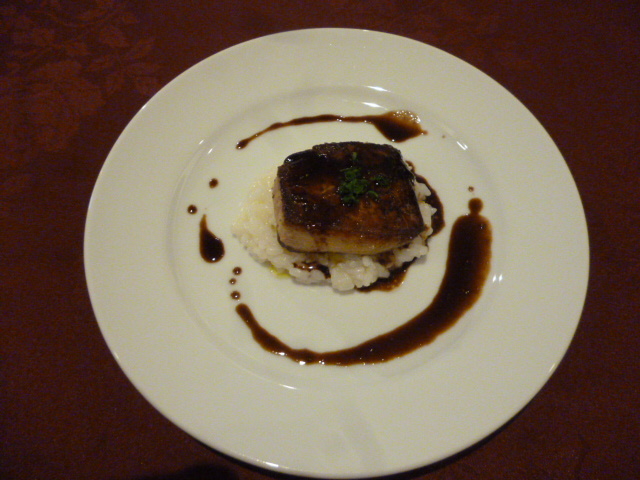 オードブル 鴨のフォアグラのソテー、パルミジャーノリゾット添えの場合