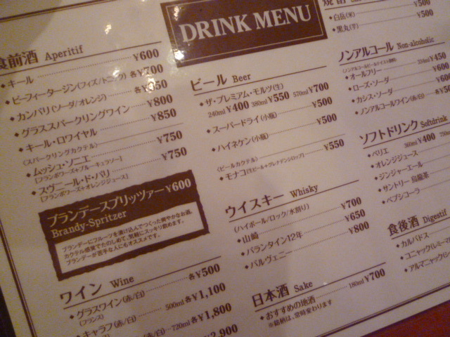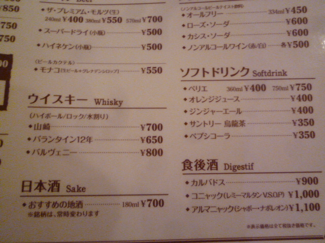 ドリンク、フレンチレストランにしては、なかなか良心的な価格だと思う