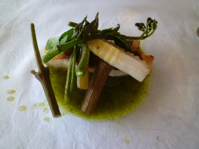 ⑤穴子のソテー マスタードと木の芽を混ぜたソース