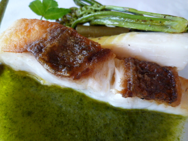 6品目 メインの魚料理 真鯛のポワレ 春菊のソース