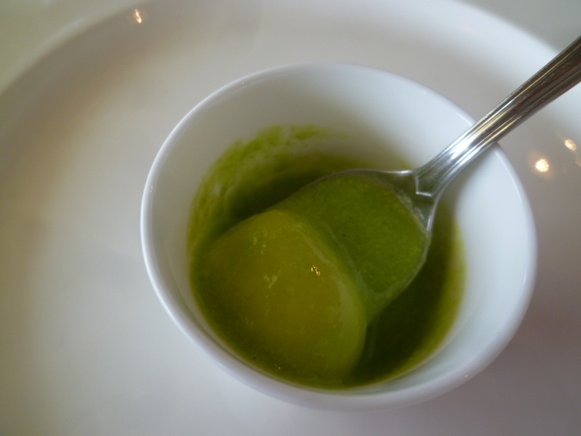 1品目 白玉入りグリーンピースのポタージュ