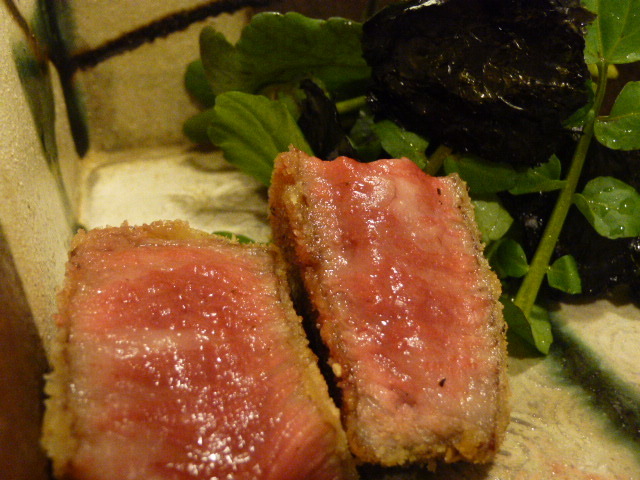宮崎牛のフィレ肉を50℃で1時間火を通して最後に軽く揚げる