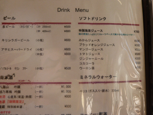 高級宿なので覚悟してたが、ドリンクの値段はそこまで高くない