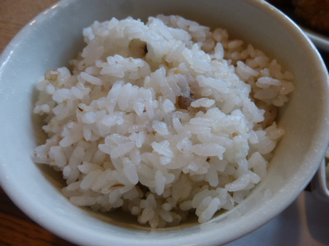 白ご飯or八穀米は八穀米選択、おかわりできるようだ 汁物は具だくさんみそ汁を選択
