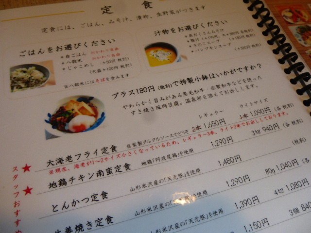定食それぞれにレギュラーサイズとライトサイズがある