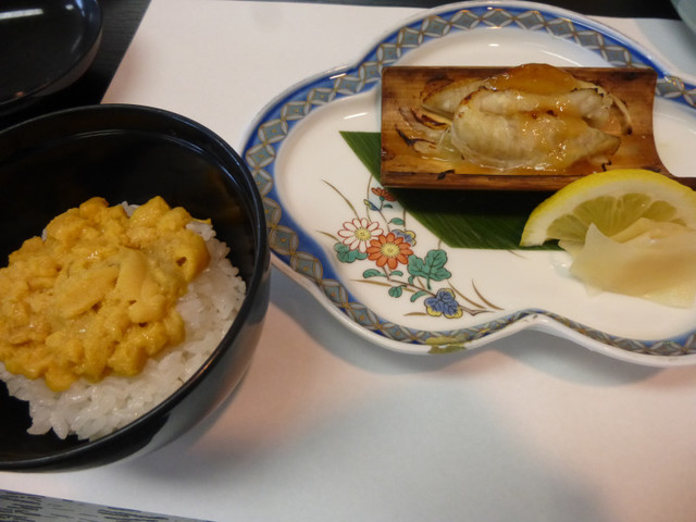 雲丹とあわびの宝焼き 雲丹醤油上ぬり