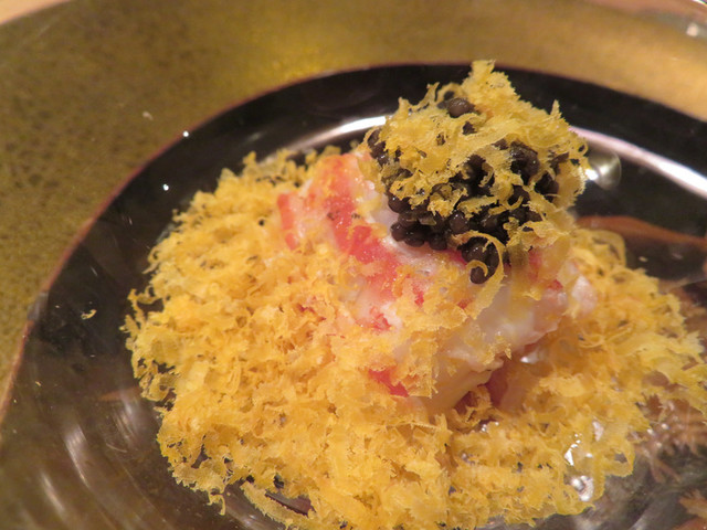 これを先程の黒酢と卵黄のソースにつけて食べる