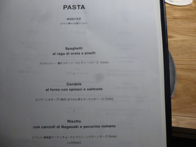俺はスパゲッティー 鯛のラグーソースとグリーンピースを選択