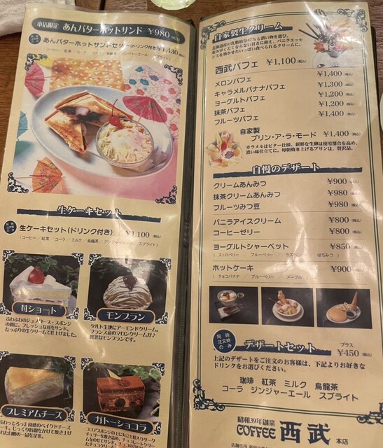 無性にパフェの口になってたので、デザートセットで西武パフェとアイスコーヒーを注文。(1550円)