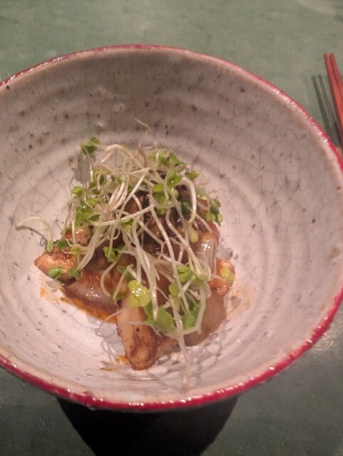 黒鯛のたたき?> こちらは辛くなく、さっぱりといただけました。