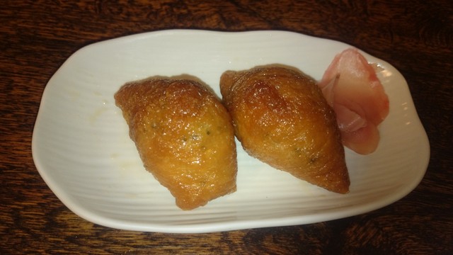 油揚げは、すし飯が、あっさりとしてお酢が効いています。少しバランスが悪いけど、油揚げに濃いめの味付けが効いていて美味しいです。