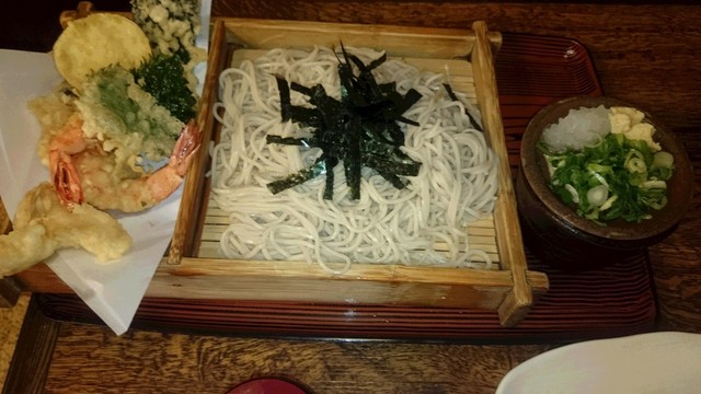 天ざる・・・えび、大葉、芋、南瓜等、カラット揚がっていて美味しいです。