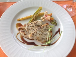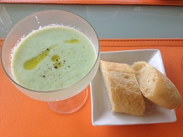 夏野菜のキュウリは身体を冷ましてくれる効果がありますが、キュウリのスープなんて初めて頂きました。しっかりとキュウリの味がするスープはとても美味しく、新たしい発見を与えてくれました。途中から、飲みものは白のグラスワインを頂きました。
