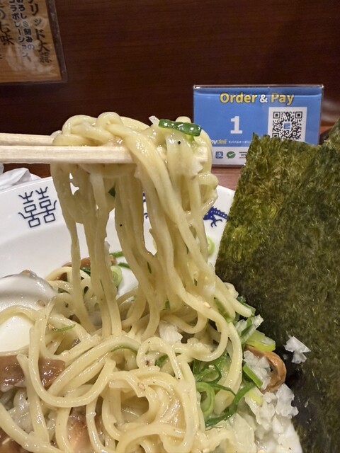 麺はレギュラーとは異なり細麺でツルッといただくことが出来ます
