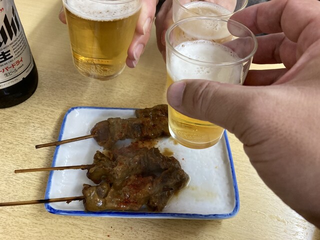 390円の麦酒大瓶をスタートにどて焼き、ねぎま、おでん、